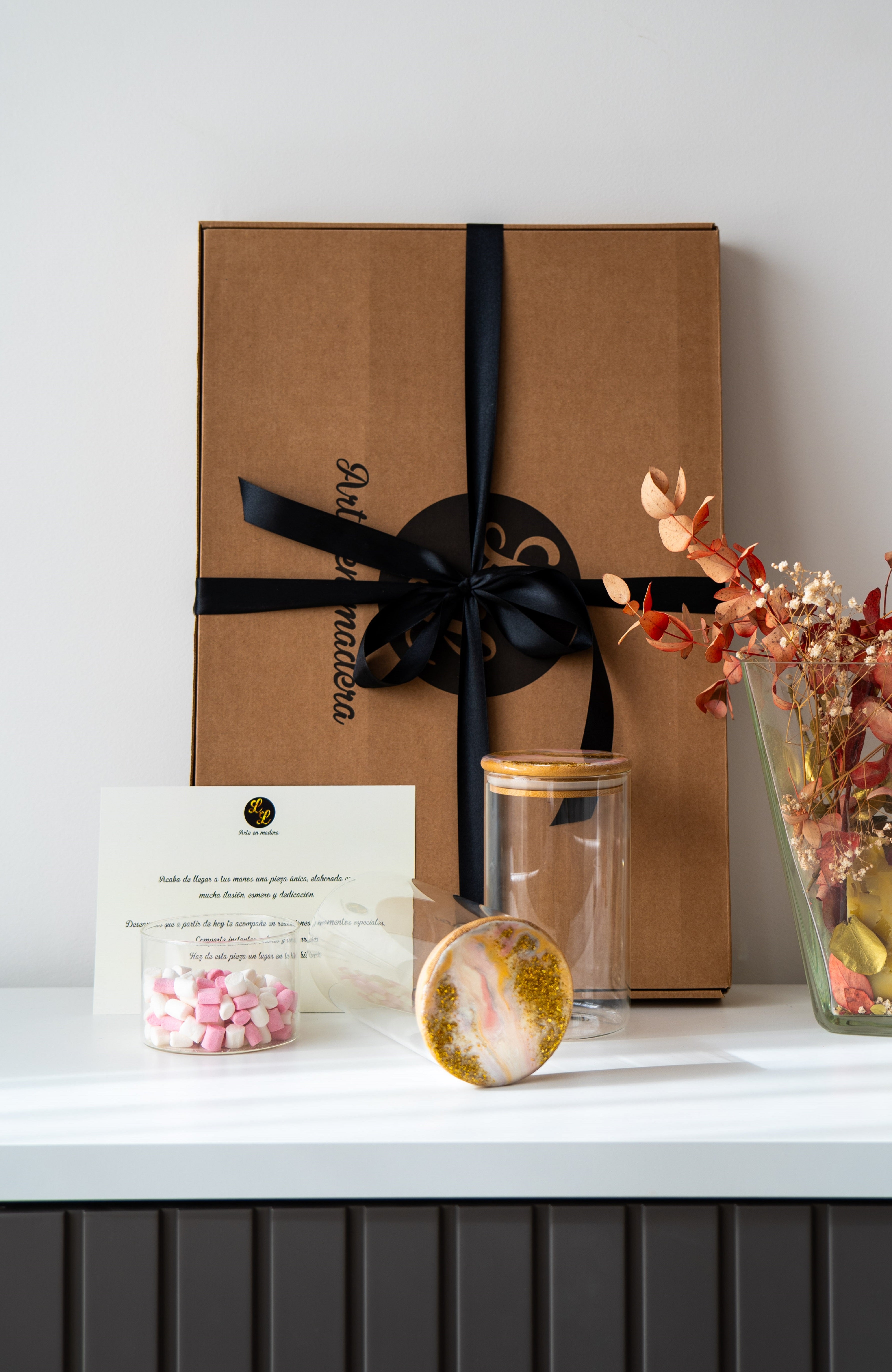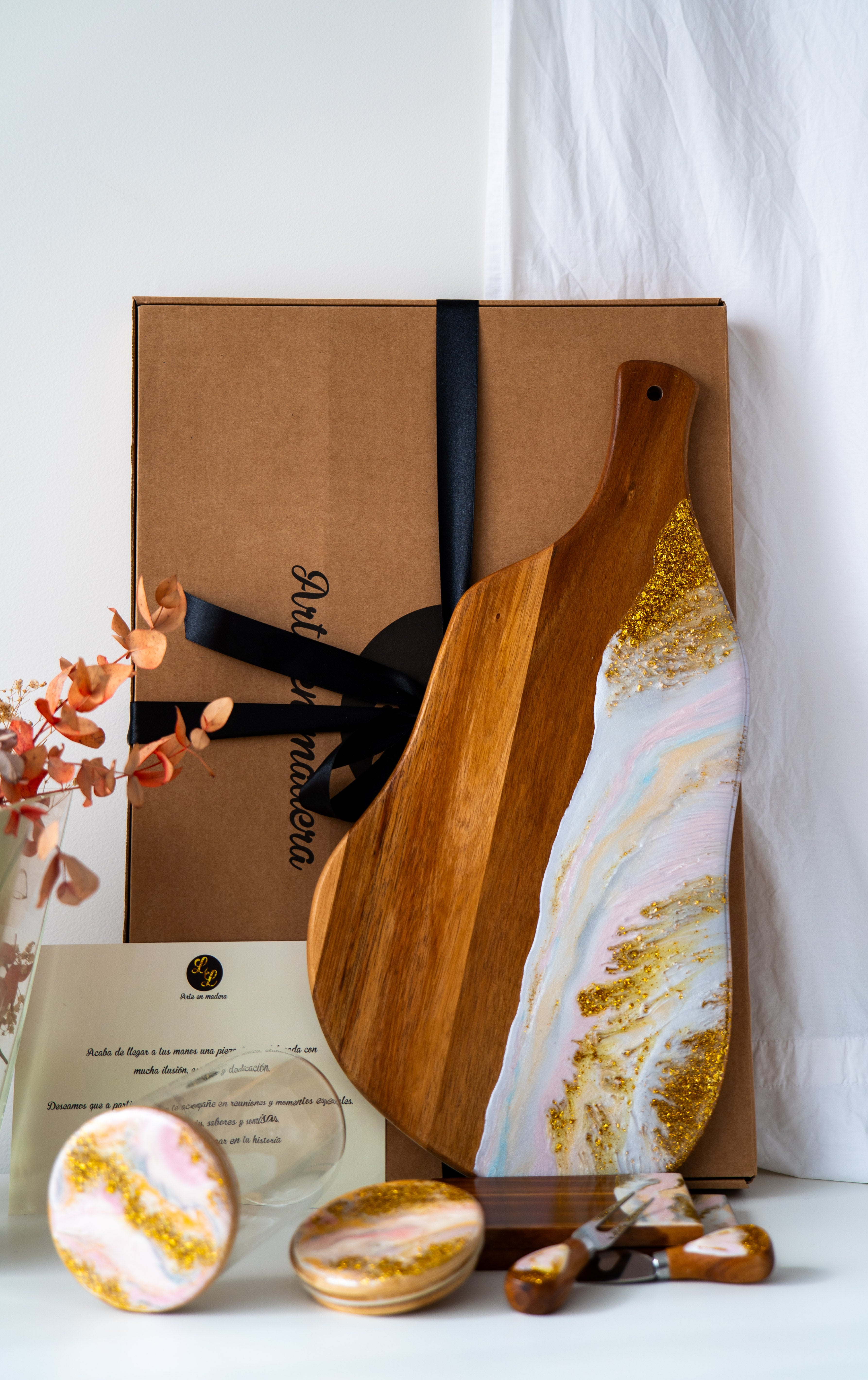 🎁 ¿Tienes que hacer un regalo y no sabes qué elegir para no regalar “lo de siempre”? Regala el Pack Mármol Rosa, que incluye la tabla, cubiertos, los posavasos y dos botes a conjunto.